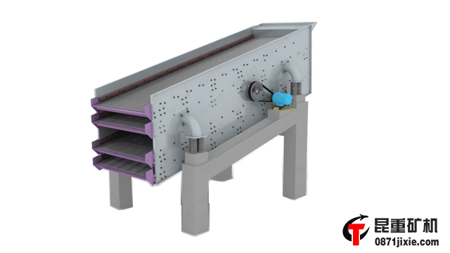 圓振動(dòng)篩工作時(shí),電動(dòng)機(jī)經(jīng)傳動(dòng)器使激振器偏心塊產(chǎn)生高速旋轉(zhuǎn)。運(yùn)轉(zhuǎn)的偏心塊產(chǎn)生很大的離心力,激發(fā)篩箱產(chǎn)生一定振幅的圓運(yùn)動(dòng),篩上物料在傾斜的篩面上受到篩箱傳給的沖量而產(chǎn)生連續(xù)的拋擲運(yùn)動(dòng),物料與篩面相遇的過程中使小于篩孔的顆粒透篩,從而實(shí)現(xiàn)分級(jí)。